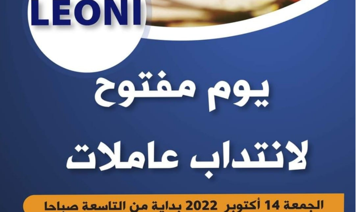 ليوني ماطر الشمالية ينظم يوما مفتوحا لانتداب عاملات و ذلك بالتنسيق مع مكتب التشغيل بماطر يوم الجمعة 14 اكتوبر 2022 بداية من التاسعة صباحا بمقر مكتب التشغيل بالجهة