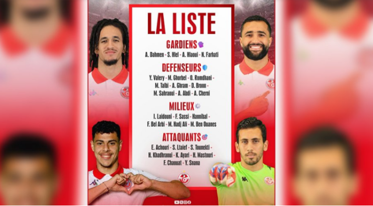 أعلنت الجامعة التونسية لكرة القدم اليوم الأحد 25 ماي 2025 عن قائمة اللاعبين الذين وجه إليهم سامي الطرابلسي الدعوة للمشاركة في التربص التحضيري الذي يسبق مباريات بوركينا فاسو والمغرب وغينيا الودية مطلع شهر جوان القادم.