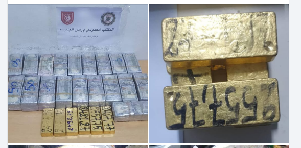أحبطت مصالح الديوانة بالمعبر الحدودي برأس جدير محاولة تهريب مبلغ من العملة الأجنبية بقيمة 2.8 مليون دينار (945700 دولار) و6 سبائك من الذهب تزن أكثر من 14 كلغ إلى خارج البلاد التونسية.