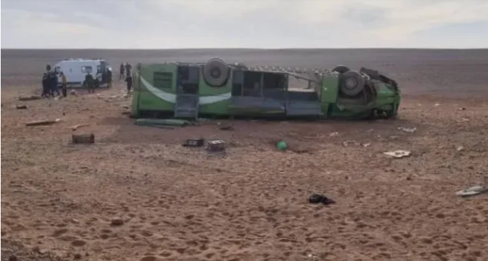 الرئيسيةمجتمع الجزائر: حادث انقلاب حافلة يسفر عن 14 قتــ.يلا و34 مصـ.ابا بواسطة ماطر نيوز في 7 ديسمبر 2025 شاركها توفي 14 شخصا وأصيب 34 آخرون السبت في انقلاب حافلة لنقل المسافرين في جنوب الجزائر، وفق ما أفاد بيان للدفاع المدني. وأظهرت صور نشرتها وسائل إعلام محلية الحافلة منقلبة على سقفها إلى جانب طريق في بلدة تبلبالة، على بُعد نحو 400 كيلومتر جنوب مدينة بشار، في جنوب البلاد. وانحرفت الحافلة التي كانت تقل ركابا وانقلبت أثناء سيرها على الطريق السريع الذي يربط مدينتي بشار وتندوف، في أقصى جنوب الجزائر. وأعرب الرئيس عبد المجيد تبون عن حزنه الشديد للحادث، مقدما تعازيه لأسر الضحايا. ويعد هذا الحادث المروري الأكثر دموية منذ أوت 2025 عندما انحرفت حافلة تقل ركابا في واد قرب الجزائر العاصمة، ما أسفر عن مقتل 18 شخصا. -أ ف ب- شاركها FacebookTwitterWhatsAppPinterestالبريد الإلكترونيPrint