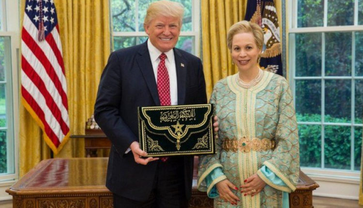 وفي احتفالية خاصة أقيمت في المكتب البيضاوي بالبيت الأبيض قدمت الأميرة لالة جمالة العلوي، سفيرة المغرب إلى الولايات المتحدة، لترامب “وسام محمد”، وهو جائزة لا تمنح سوى لرؤساء الدول، وقُدّم كهدية من العاهل المغربي الملك محمد السادس.