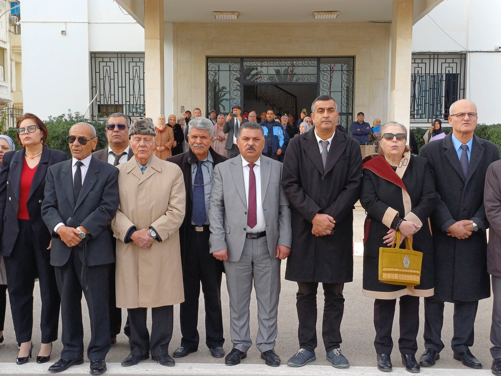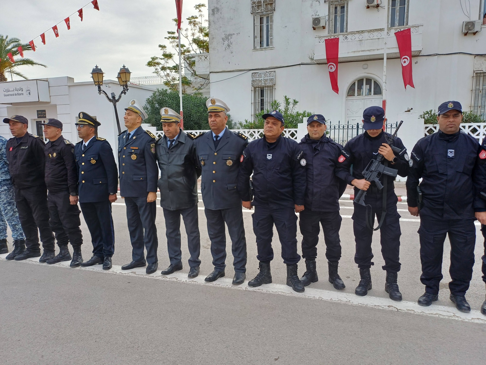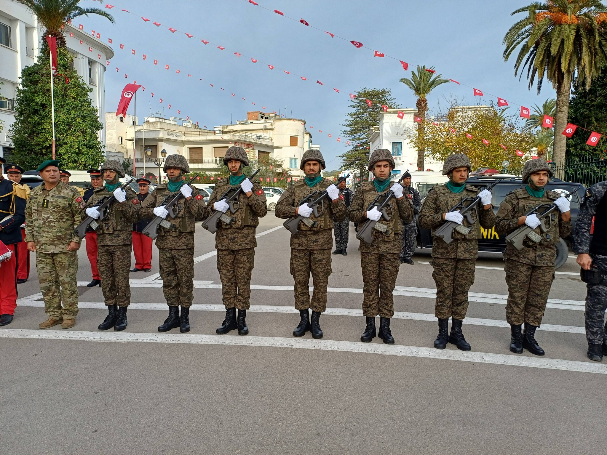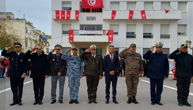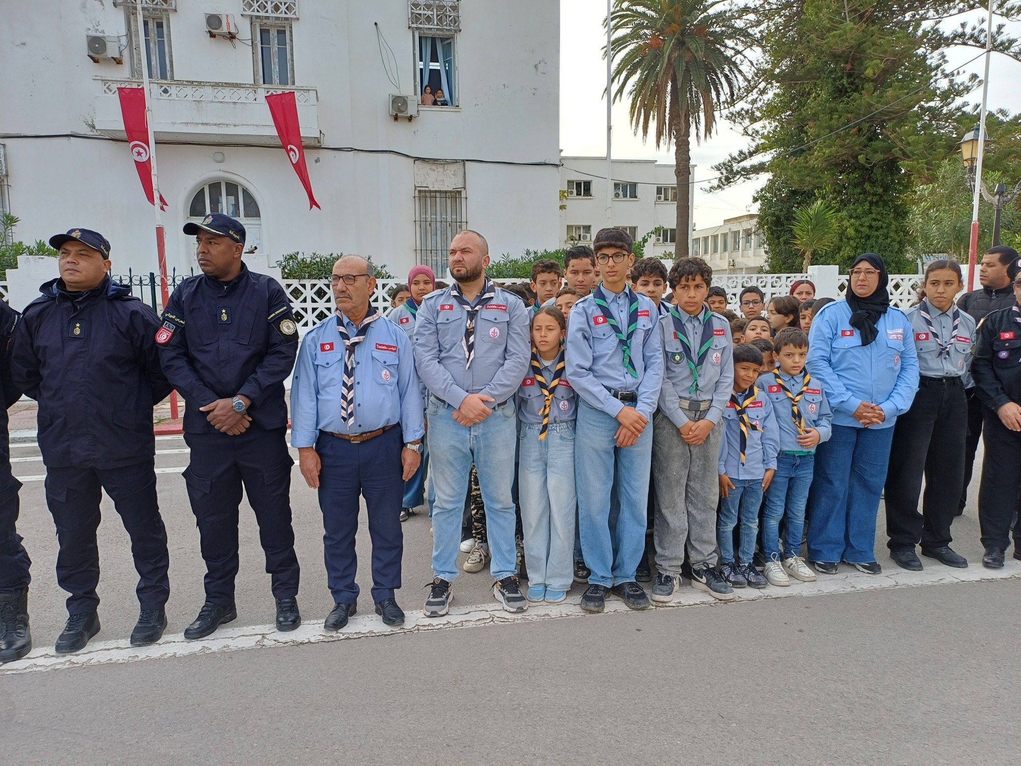 و تضمن الموكب الرسمي للاحتفال الجهوي ،الذي إنتظم امام مقر الولاية ، بإشراف والي بنزرت سالم بن يعقوب ، موكب وطني مهيب ومميز لتحية العلم المفدى على انغام النشيد الوطني بحضور الكاتب العام للولاية عبد اللطيف حميد وممثلي مختلف المكونات الرسمية والمنظماتية المهيكلة والمستقلة، وبمشاركة مختلف التشكيلات الأمنية والعسكرية والحماية المدنية .