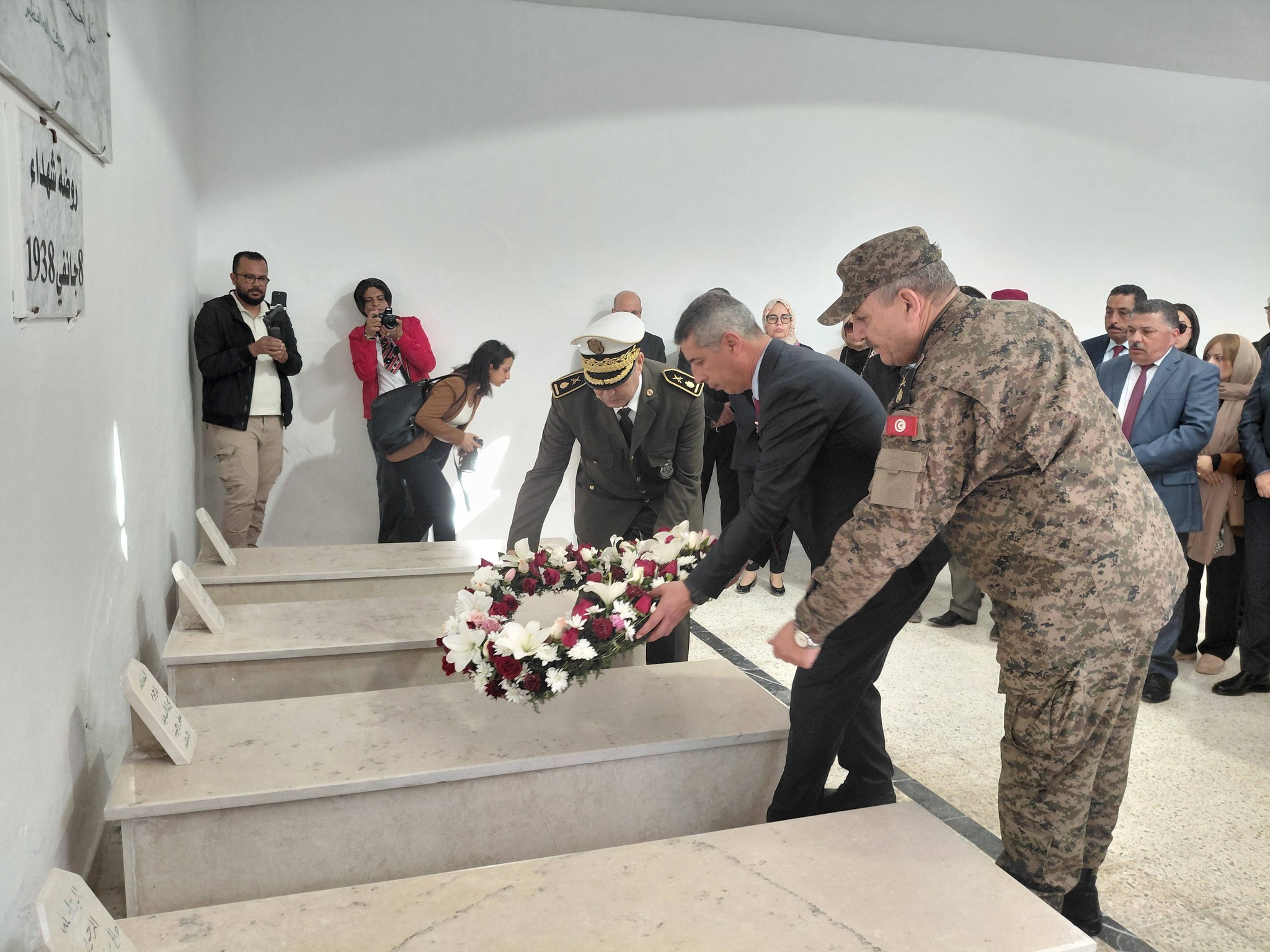 شهد الموكب حضوراً لافتاً تمثل في ثلة من المناضلين والكاتب العام للولاية السيد عبد اللطيف حميد، إلى جانب القيادات الأمنية والعسكرية السامية، وممثلي السلطات المحلية والبلدية والمكونات المجتمعية والمنظمات الوطنية. وقد تم وضع إكليل من الزهور وتلاوة فاتحة الكتاب ترحماً على أرواح الشهداء البررة، في مشهد جسّد معاني الوفاء لمن ضحوا بدمائهم في سبيل دحر الاستعمار الفرنسي الغاشم وبناء الدولة التونسية المستقلة.