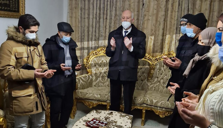 تنقل اليوم الأحد 24 جانفي 2021 رئيس الجمهورية قيس سعيد، إلى منزل الفقيدة محرزية العبيدي، أين قام بتأدية واجب العزاء لأفراد عائلتها، كما قام بتدوين كلمة في سجل التعازي.