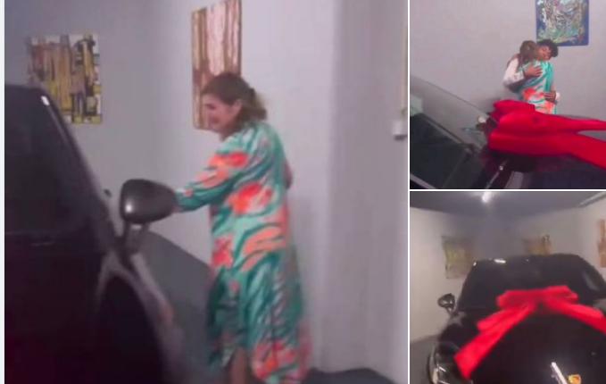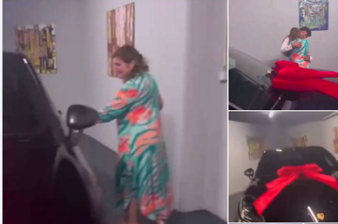 وأبان الفيديو ردة فعل والدة رونالدو حيث بكت من الفرح بعد رؤيتها السيارة واحتضنت حفيدها، وكشف عشاق السيارات أن ثمن السيارة يفوق المليون ريال سعودي.