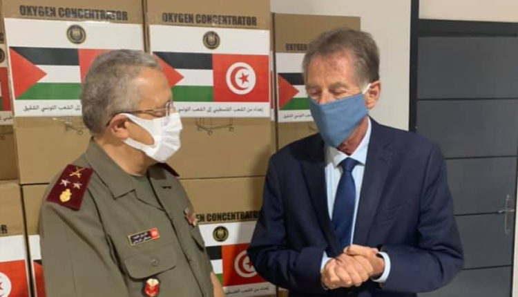 وجه الرئيس محمود عباس رئيس دولة فلسطين بتقديم دعم فوري وعاجل وفق الامكانيات الفلسطينية المتاحة، حيث تم اليوم الاثنين الموافق 9 أوت 2021 تسليم 50 جهاز مكثف أوكسجين لإدارة الصحة العسكرية بالمشفى العسكري بتونس وذلك بحضور سعادة السفير هائل الفاهوم سفير دولة فلسطين لدى الجمهورية التونسية والفريق مصطفى الفرجاني مدير إدارة الصحة العسكرية بتونس والدكتور عمر دقة السفير المناوب والعميد فتحي المطوسي مدير المشفى العسكري.