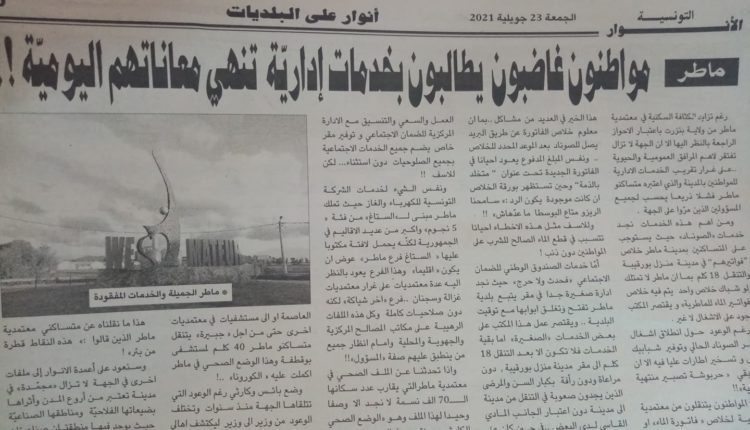 تم نشر المقال التالي في جريدة الانوار في عددها اليوم الجمعة 23 جويلية 2021 بقلم : لطفي الحيدوسي