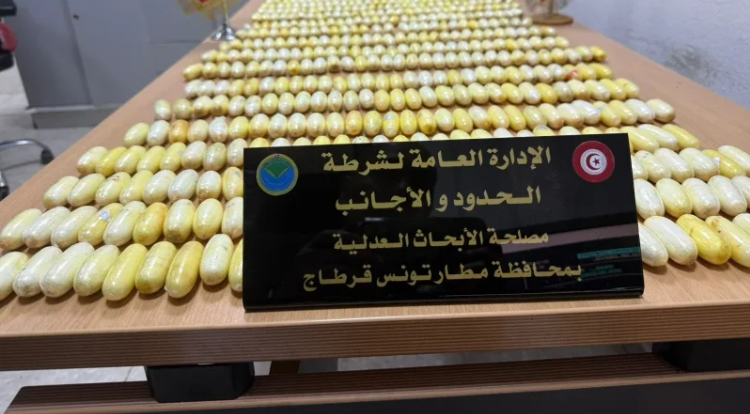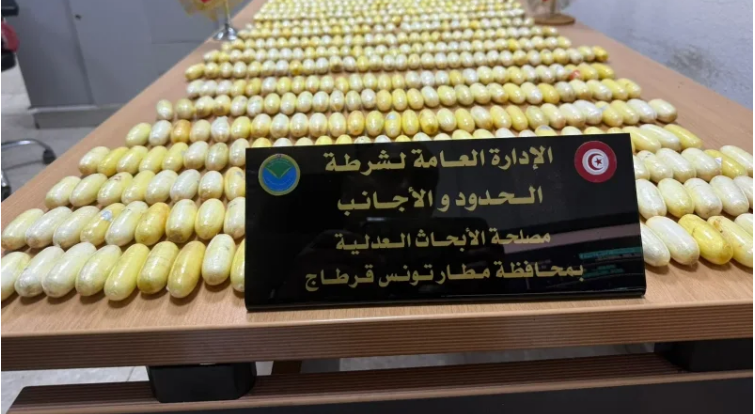 تمكنت مصالح محافظة شرطة الحدود بمطار تونس قرطاج مؤخرا من إحباط محاولة تهريب كمية هامة من المخدرات ناهزت 627 كبسولة تزن أكثر من 9 كلغراما من الكوكايين الخام والإطاحة بعناصر شبكة أجنبية تضمّ أفارقة من دول إفريقيا جنوب الصحراء ينشطون في مجال تهريب المخدرات إلى تونس عبر النقاط الحدودية، كما تم حجز مبلغ مالي بالعملة الصعبة والتعرّف على بقية أطراف تونسية لشبكة تنشط داخل البلاد وإدراجهم بالتفتيش.