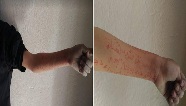 تعرّض تلميذ في الثامنة من عمره يدرس بالسنة الثانية ابتدائي بإحدى المدارس الابتدائية بمعتمدية أولاد حفوز من ولاية سيدي بوزيد، إلى اعتداء على حرمته الجسدية من خلال كتابة حروف وكلمات على كامل ذراعه ووضع علامة قاطع ومقطوع” على وجهه من قبل معلمته.