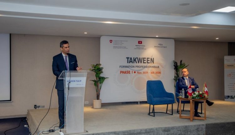 أشرف وزير التشغيل والتكوين المهني نصر الدين النصيبي، يوم الجمعة 20 ماي مرفوقا بجوزيف فيليب رينجلي Josef Philipp Renggli سفير سويسرا بتونس على فعاليات الإعلان عن انطلاق تنفيذ برنامج “تكوين “Takweenوالذي يندرج في إطار التعاون التونسي السويسري تحت اشراف وزارة التشغيل والتكوين المهني.