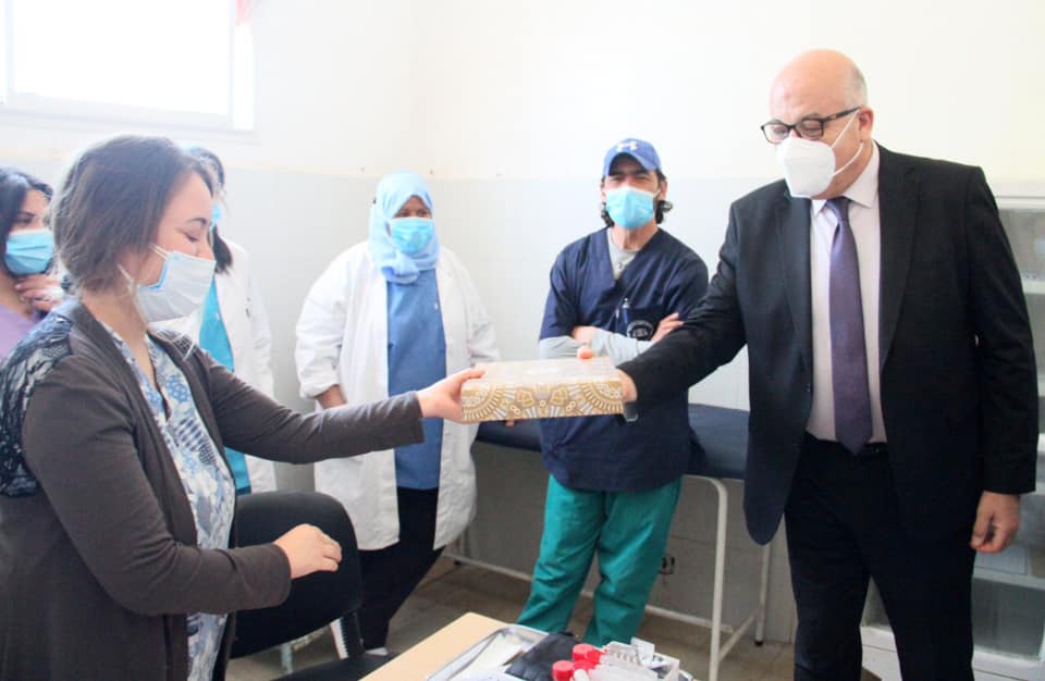 وتوجه الوزير للإطارات الطبية وشبه الطبية وكل العاملين بالمستشفى ومن خلالهم الأسرة الصحية الموسعة بتهانيه بمناسبة عيد الفطر المبارك مسديا تشجيعاته لمزيد البذل والعطاء من أجل مجابهة جائحة كوفيد-19.