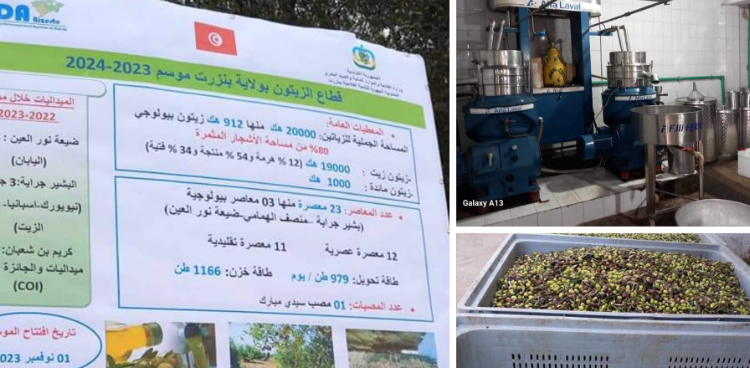 ولاحظ ان تقديرات الانتاج تعادل الموسم الجاري حوالي 20 ألف طن زيتون أي ما يعادل 4000 طن زيت، تم تخصيص 24 معصرة بالولاية منها 13 معصرة عصرية و11 معصرة تقليدية لانجاح الموسم بطاقة تحويل جملية 979 طن في اليوم ،وبطاقة خزن جملية تعادل 1166 طن.